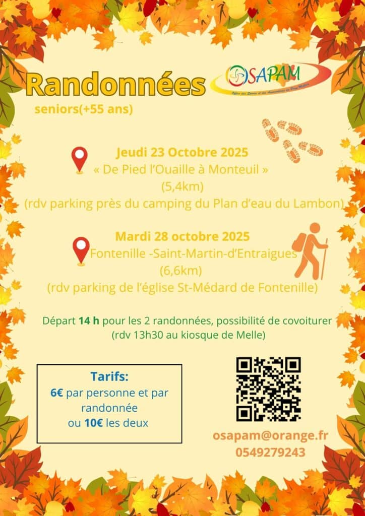 Pour la réservation des randonnées, vous pouvez nous contacter par téléphone au : 05-49-27-92-43 ou par mail: osapam@orange.fr